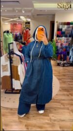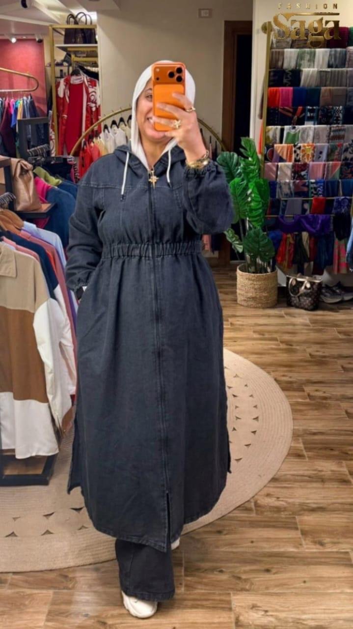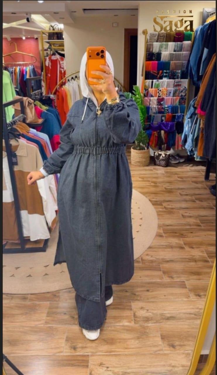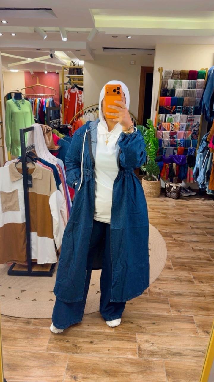 سوت جينز قطعتين: بنطلون واسع تونيك طويل ستايل كاجوال أنيق
